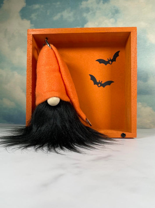 Gift Set - Halloween Orange and Black Gnome and Bat Gift set with Gnome Home - 4" Plush Gnome