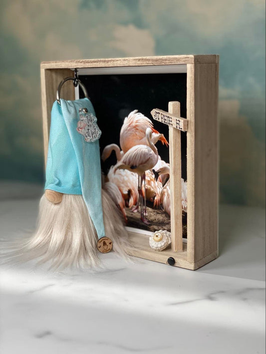 Gift Set - St. Pete Florida Gnome Decor Gift set with Pink Flamingo Photo and 4" Plush Gnome