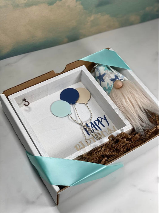 Gift Set - Happy Birthday Gnome Decor Gift set with Balloons and 4" Plush Gnome