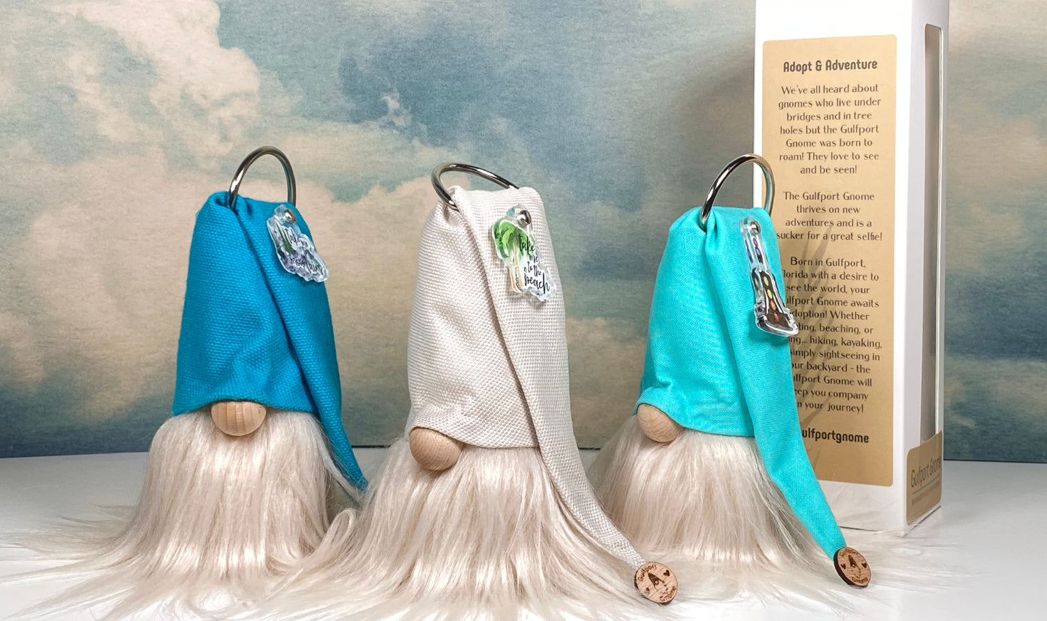 The Gulfport Gnome is a mini-plush collectible meant to spread positivity and promote the healing properties of nature. Keep your gnome safe at home or clip it on your bag for on-the-go adventures.